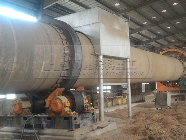 圆筒形的主窑体与水平呈3°左右的倾角放置在托滚上。物料在高的一端进入窑内,在窑体做回转运动的作用下, 物料从高处(窑尾)滚落至低处(窑头),同时,在窑头处,高压风机将煤粉(或天然气等其他燃料)喷入窑内,并使其充分燃烧,产生的热量使物料发生物理和化 学变化,产生膨胀现象,冷却后既为陶粒。