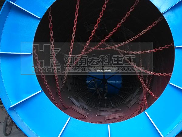 制革污泥经由专用加料机进入烘干机内,被转动的筒壁上的特殊设计的箅板和抄板抄起到顶部落下,在下落的过程中经过强力打散装置的打散破碎。大块物料在反复抄起落下的过程中,不断被打碎成小颗粒,在干燥机前部,采用高强度辐射传热技术快速干燥物料,将物料干燥成为无粘度的小颗粒,而后进入降速干燥段,热风与物料进行传热和传质,完成干燥过程,达到要求的水分排出;细粉由收尘装置收集。尾气可经处理完全达到环保排放要求。